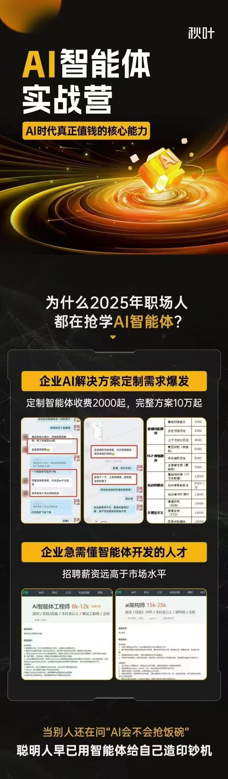 秋叶·AI智能体实战营完整版AI时代真正值钱的核心能力1人完成团队级产出,工作效率10倍提升,业务流程自动化