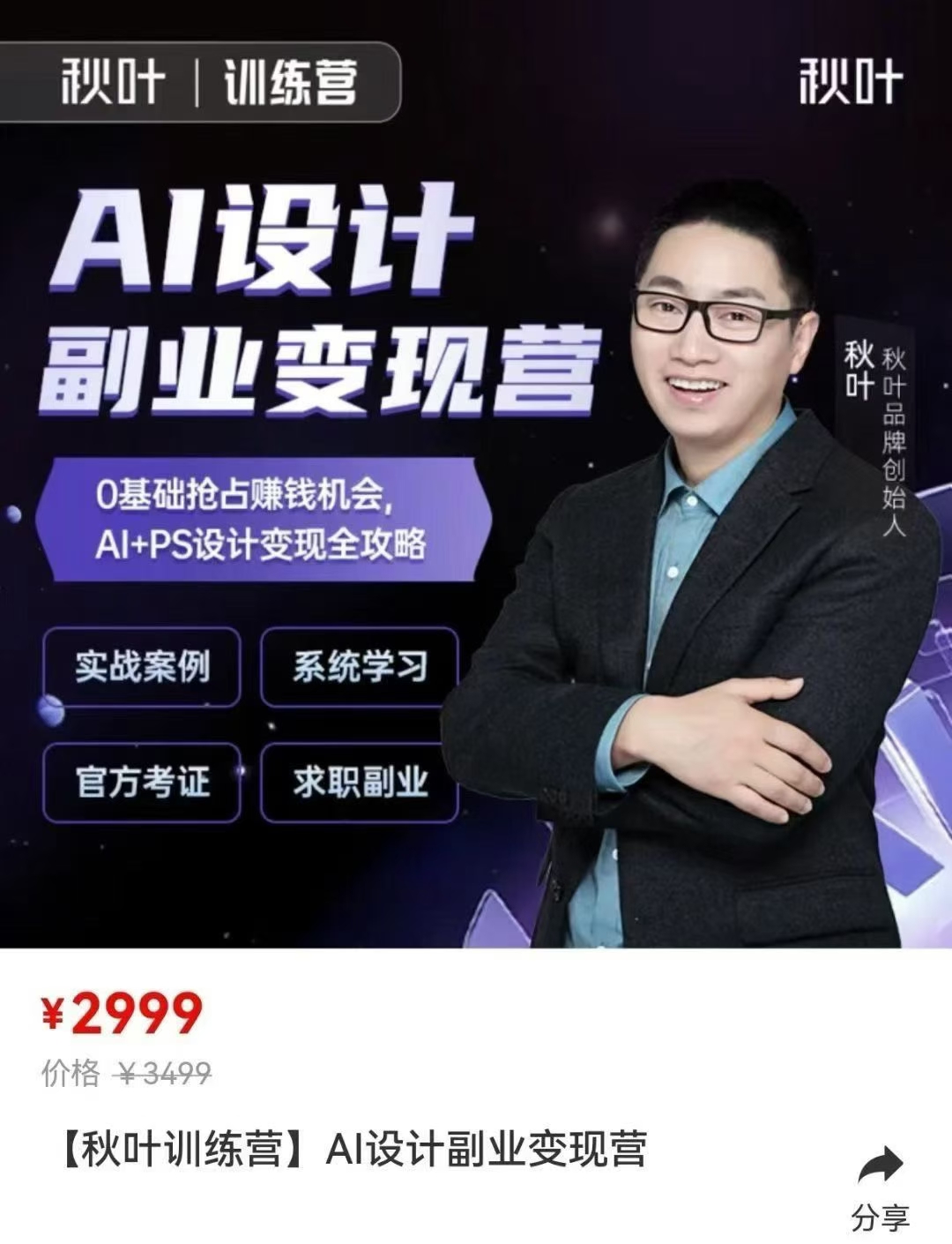 秋叶·AI设计副业变现营0基础抢占赚钱机会,AI+PS设计变现全攻略199🧧