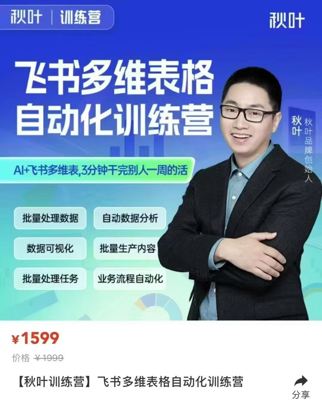 秋叶·飞书多维表格自动化训练营AI+飞书多维表,三分钟干完别人一周的活149[红包]