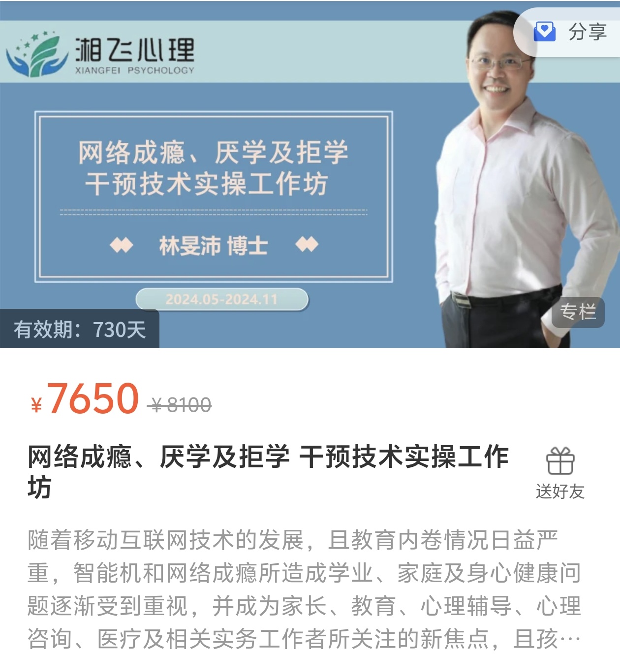 网络成瘾、厌学及拒学 干预技术实操工作坊99🧧