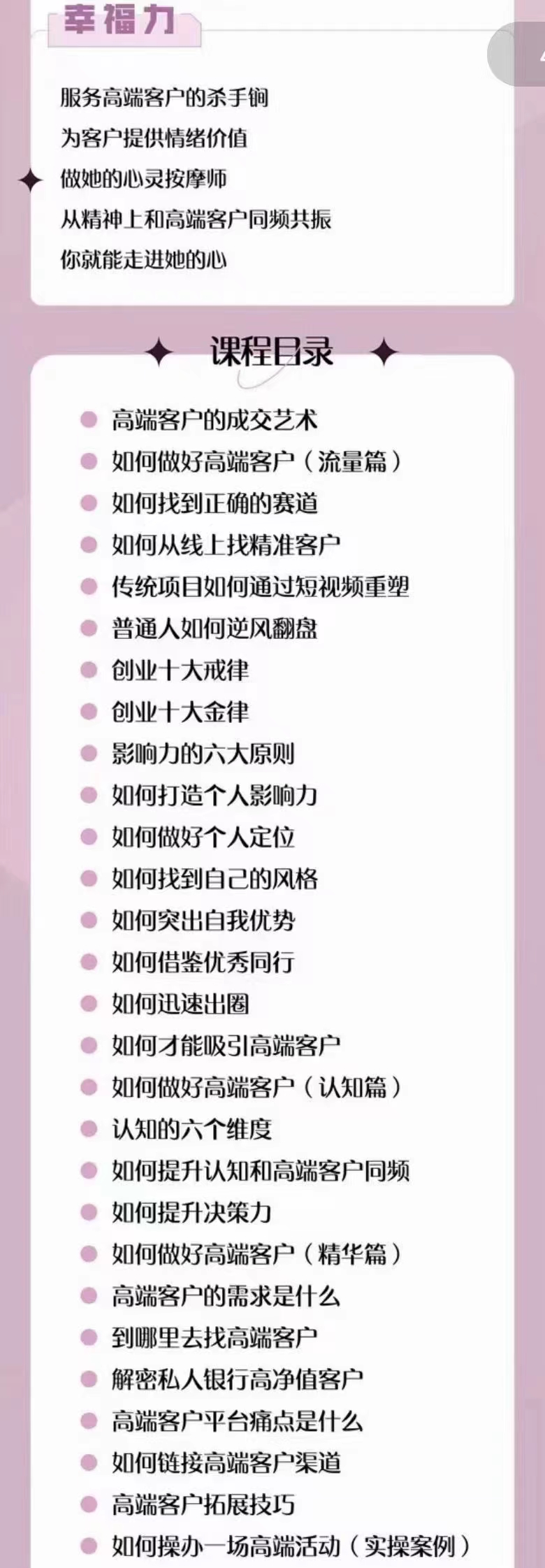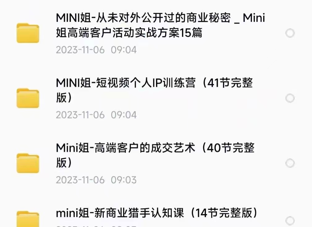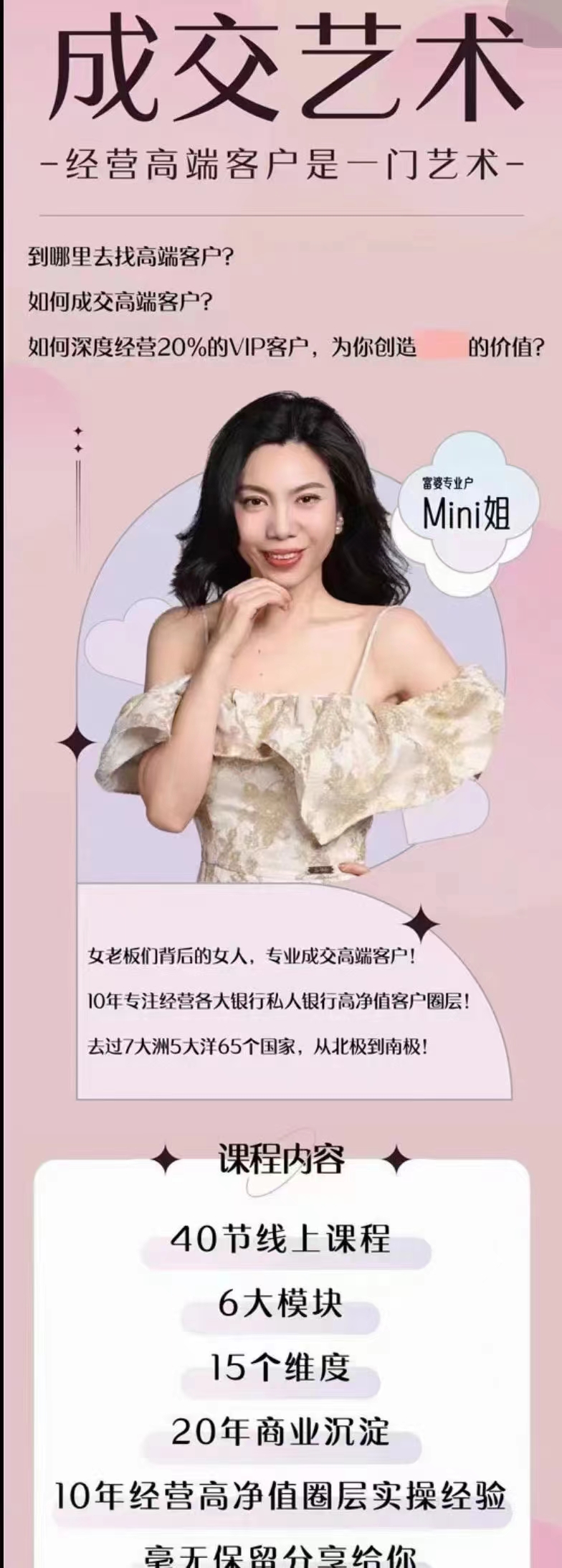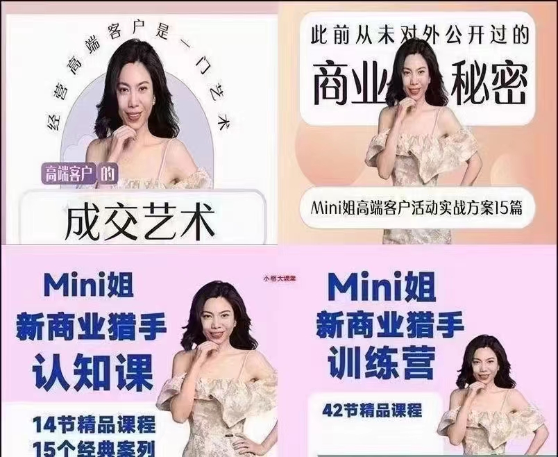 MiNi姐-四课合集 1.高端客户的成交艺术 2.短视频个人Ip训练营 3.高端客户活动实战方案 4.新商业猎手认知课 资源下载资源下载价格199元立即购买 或 升级VIP后免费升级VIP售后问题请联系QQ:32492069