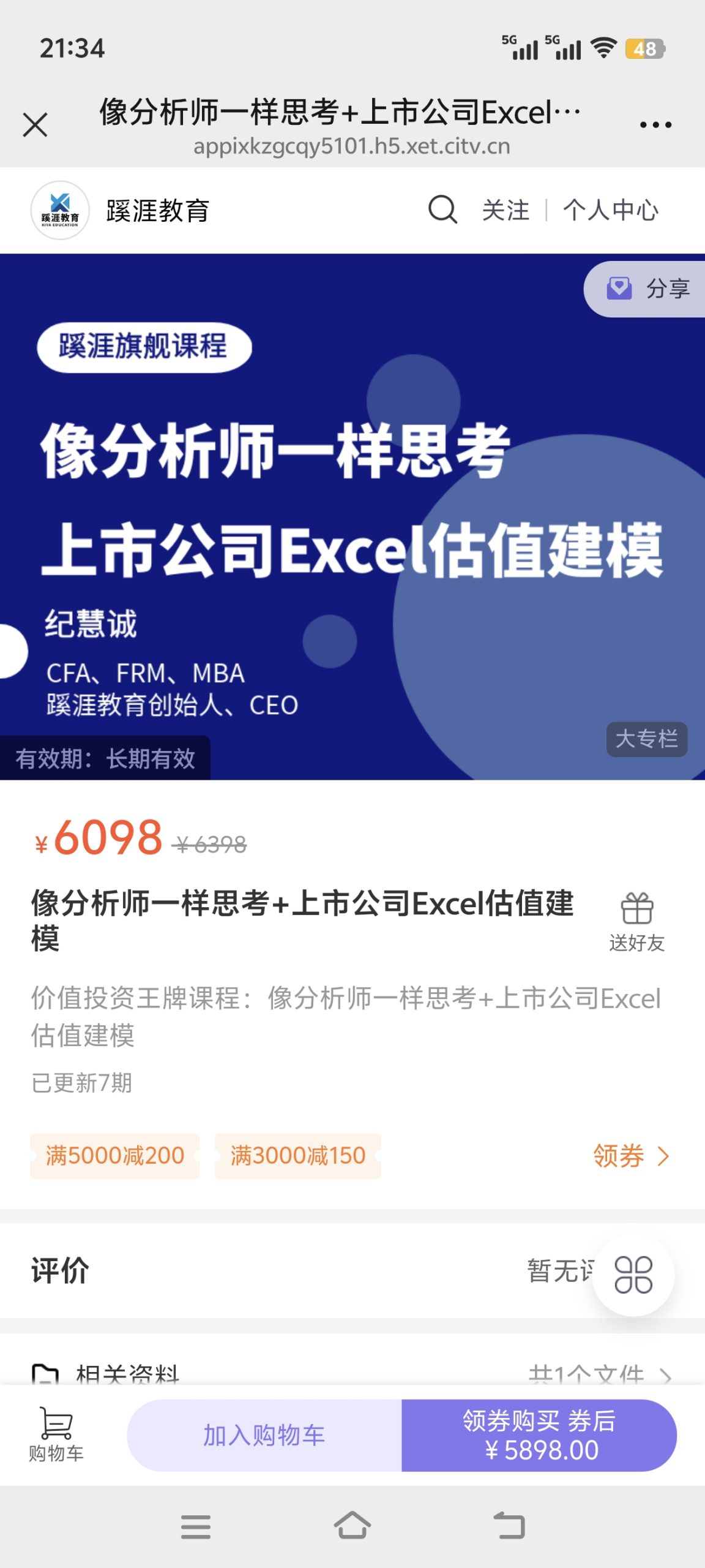价值投资王牌课程:像分析师一样思考+上市公司Excel估值建模