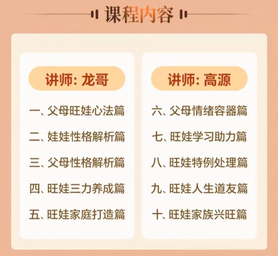龙哥&高源老师《养娃的秘密》(养娃的秘密)视频课,37节完整版。包含父母旺娃心法、娃娃性格剖析、父母性格解析等9大模块。
