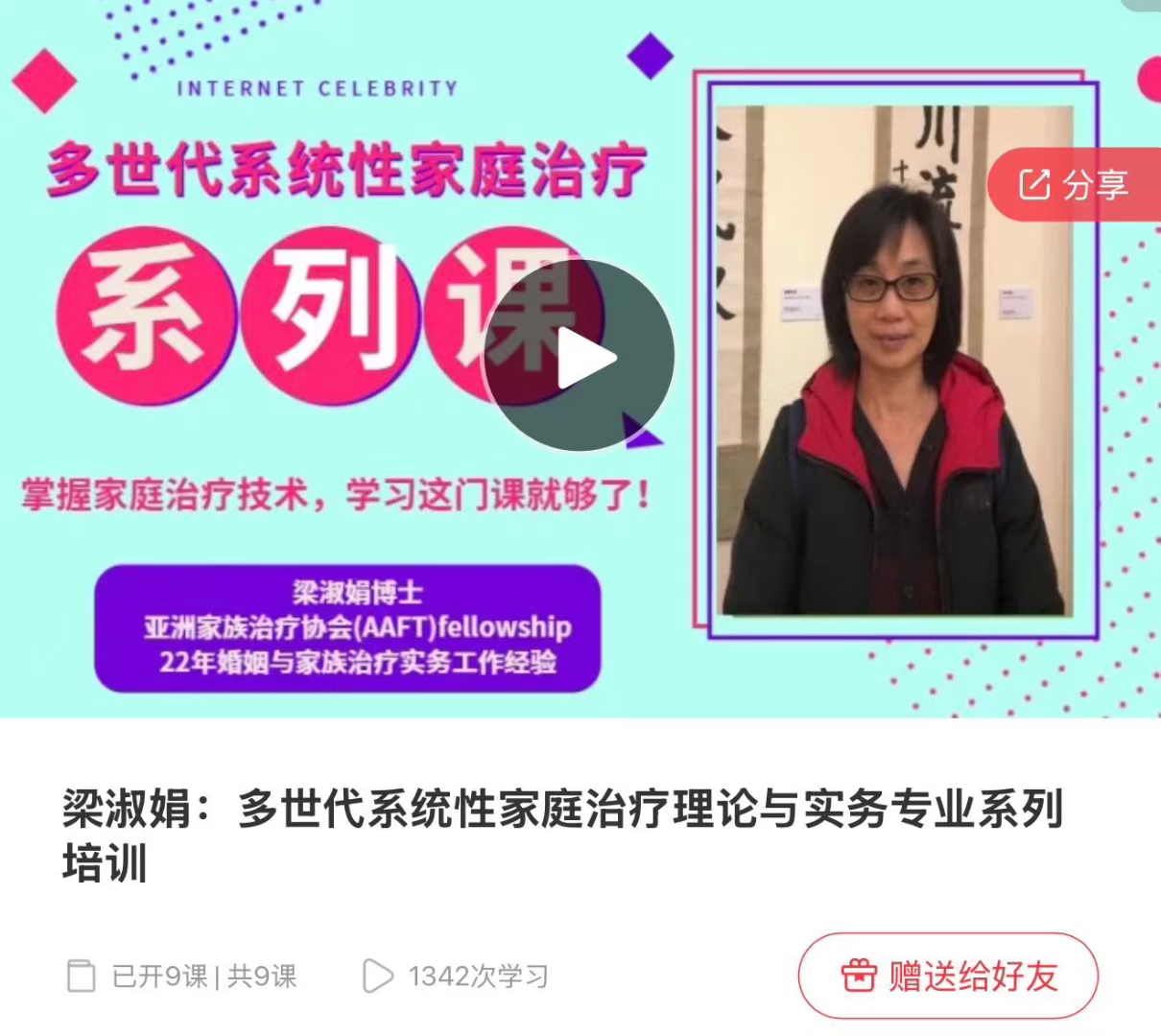 梁淑娟:多世代系统性家庭治疗理论与实务专业系列培训视频课程