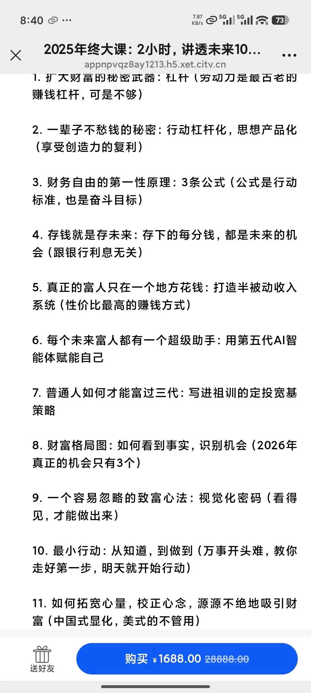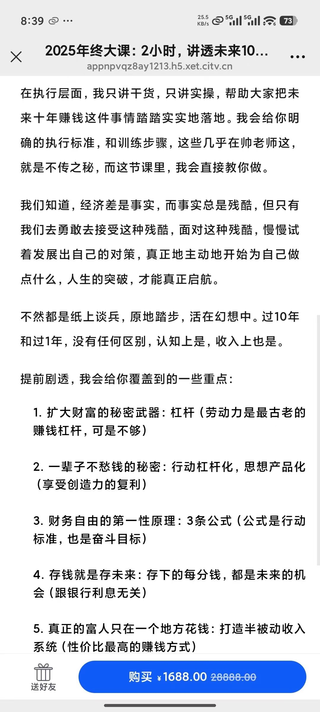 💫【帅老板2025年终大课】2小时,讲透未来10年怎样赚钱「AI实战版、3:38分钟」未来10年财富趋势是什么?AI时代,如果想赚到钱,我应该做点什么?作为普通人,我如何为下一个10年做好准备?这堂课有点小贵,但别担心,未来10年,你会百倍千倍地赚回来!整堂课2小时,我会跟你说一些真话和狠话,说透钱的本质和核心,让你看到未来10年,这个金钱世界的真相和事实。弄明白根本,是改变和行动的第一步。在执行层面,我只讲干货,只讲实操,帮助大家把未来十年赚钱这件事情踏踏实实地落地。我会给你明确的执行标准,和训练步骤,这些几乎在帅老师这,就是不传之秘,而这节课里,我会直接教你做。我们知道,经济差是事实,而事实总是残酷,但只有我们去勇敢去接受这种残酷,面对这种残酷,慢慢试着发展出自己的对策,真正地主动地开始为自己做点什么,人生的突破,才能真正启航。不然都是纸上谈兵,原地踏步,活在幻想中。过10年和过1年,没有任何区别,认知上是,收入上也是。